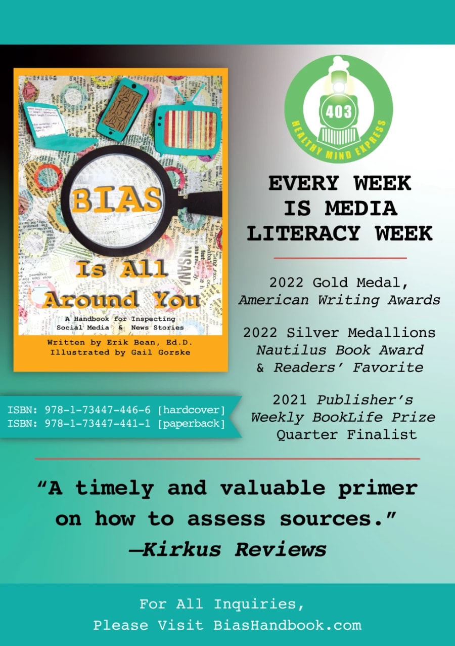 The following 7 questions are designed to accompany the book, Bias Is All Around You: A Handbook for Inspecting Social Media & News Stories, For definitions on your specific personal biases visit https://biashandbook.com/tools